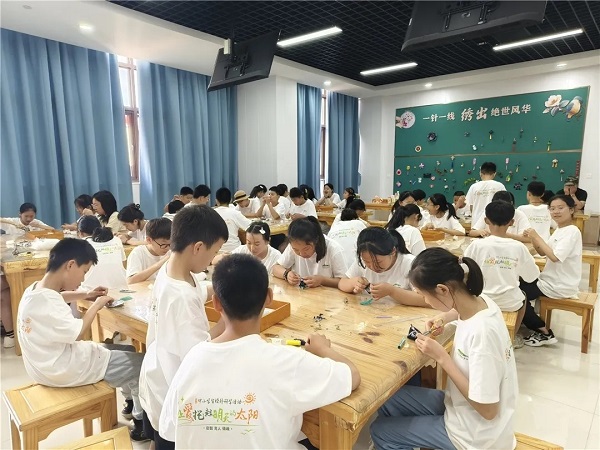 后面两天,营地开展了多姿多彩的课程,开拓了学生们的视野。同学们学习非遗项目——堆花糕团,继承文化传统,巧手勾勒福禄寿喜;玩转创客无人机,从认识无人机开始,学习了解无人机,遥控操作无人机,试着穿越障碍、定点停放等一系列操作;来到锦绣工坊,在老师的指导下,学着穿针引线、针线打结、收针技巧,一步步学习制作香包。