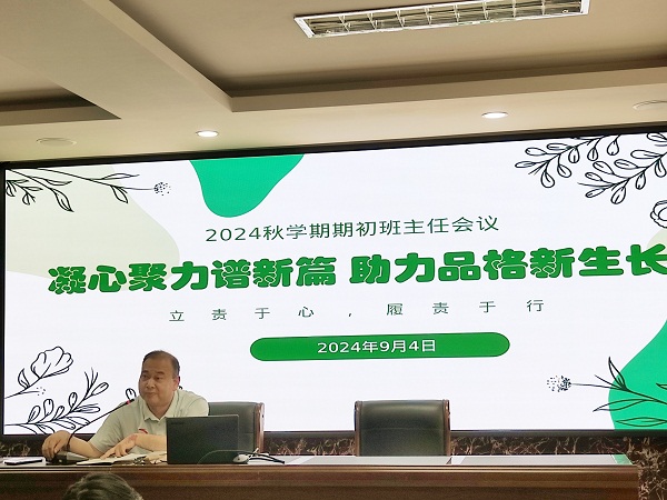 学生成长中心主任田艳玲进行新学期学生工作部署。她结合学校《班主任考核细则》回顾上学期工作,进一步明晰了在班级常规、班级建设、班级活动、个人发展等方面的努力方向并重点部署了关爱学生的“润心行动”。