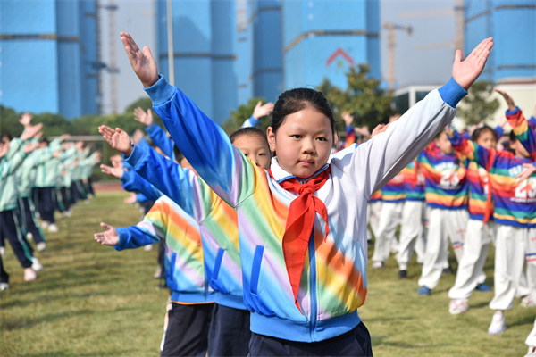 随着《这条街最靓的仔》欢快动感的旋律响起,比赛正式拉开帷幕!同学们精神饱满,动作整齐划一,时而舒展,时而腾跃,将体操的力量与美感展现得淋漓尽致!他们用充满活力的舞姿,诠释着少年的激情与活力,用自信的笑容,点燃了金秋的热情!