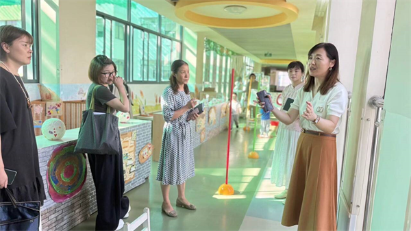 张丽霞老师表示,本次调研深刻感受到丽华三幼角角落落里立足儿童、善用资源的巧手巧思。同时,针对区域游戏优化提出了可支持的具体方向:首先建议绘制区域空间手绘图进行前置预设,以此强化整体规划的系统性与科学性;其次,明确区域内容需聚焦游戏层次性与深度的提前设计,教师的支架式支持需精准把控“度”--支持过多易使游戏成为“作业型游戏”,支持不足则会让游戏停留在“表层型游戏”,从而更好地实现深度探究;对廊道空间可进行深度规划,力求在保障室内基础游戏空间的同时,为角色游戏预留充足场地,最大限度地支持幼儿自主游戏与主动发展。