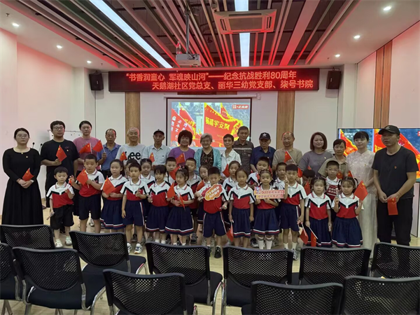 2014年起,9月3日被正式设立为“中国人民抗日战争胜利纪念日”。为了铭记这段历史、传承爱国精神,天鹅湖社区党总支联动丽华三幼党支部,邀请了可爱的小朋友、党员老师与为国家奉献过青春的老党员们,共同度过了一段难忘的时光。抗战胜利80周年的今天,因一场“书香润童心,军魂映山河”活动,变得格外有意义。
