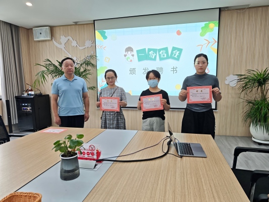 在“一份信任——颁发聘书”环节,学校为新加入的一年级膳食委员举行了庄重的聘书颁发仪式。伴随着悠扬的背景音乐,新一届委员依次上台接过聘书。主持人强调,这一纸聘书不仅是学校对家长委员的信任,更是一份守护学生饮食安全的光荣责任,象征着家校携手共筑“舌尖防线”的坚定决心。聘书颁发完毕后,现场响起热烈掌声,既是对新委员的祝贺,也饱含着对家校协作的期待。
