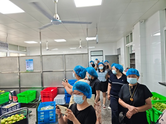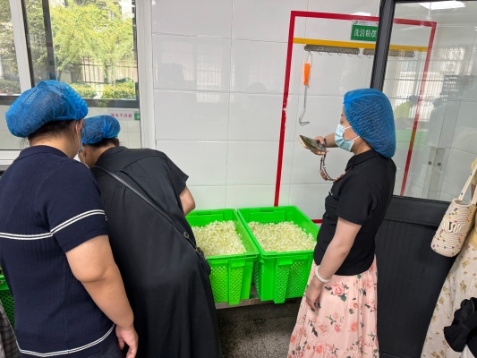 “百闻不如一见”,为让家长委员直观感受食堂运作情况,会议特设“一同见证——参观食堂”环节。在工作人员的引导下,家长委员们有序走进食堂后场,近距离观摩食材验收、清洗加工、烹饪制作、配餐分装等全流程,仔细查看食堂的卫生环境、设备消毒、食材储存等细节。参观过程中,工作人员实时解答家长疑问,透明化的操作流程、规范化的管理标准,让家长们对学校食堂的安全保障有了更真切的认识。