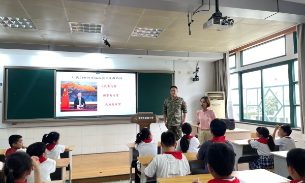在讲述他所隶属部队及其战友们的英勇战斗历程,以及英雄团长祁发宝率领官兵“以身躯筑界碑”的豪迈壮举之际,全场少先队员不约而同地挺直了腰板。“不能把祖国领土守小了 —— 这是刻在骨子里的信仰。” 话音落下,雷鸣般的掌声持续了半分钟,孩子们的反应真挚而热烈。解祥艺最后寄语同学们:“勤能补拙、珍惜当下、强健体魄,就是对祖国最好的守护。” 活动尾声,他与师生共同勉励道:“正如习近平总书记所言,人民有信仰,国家有力量,民族有希望。” 让爱国的种子在孩子们心中扎根并茁壮成长。