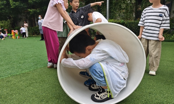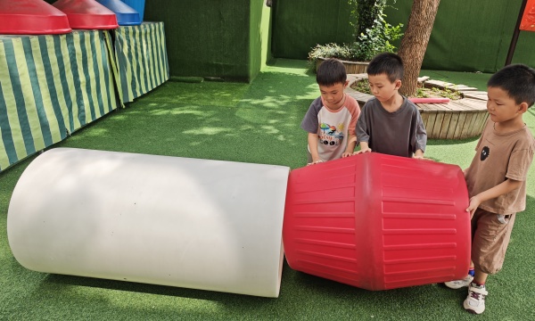 户外自主游戏丰富多彩,玩法更是层出不穷,而大滚筒的出现无疑是激发幼儿的探索欲望。当孩子们面对圆乎乎的彩色滚筒议论纷纷时,关于滚筒的自由探索就这样开始了......