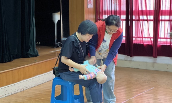在急救技能环节,医护团队利用人体模型分步演示了海姆立克急救法 (针对气道异物梗阻)和心肺复苏术的操作要点。教师和家长们积极参与模拟练习,医生一对一纠正手法细节,确保动作规范有效。现场还发放了图文并茂的急救手册,便于课后巩固学习。