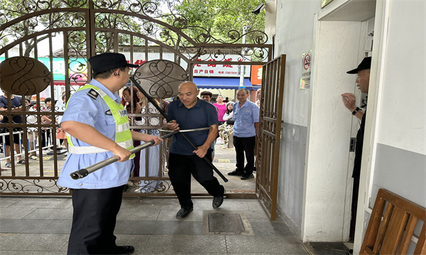 本次演练模拟的是早上幼儿入园期间突发的一次暴力袭击,暴徒在大门口外路过观察情况后,突然强行闯入校园。后勤人员发现后第一时间按响一键式报警器装置,启动校园安保系统直接向公安机关110报警,并连续大声呼叫,告知全体教职员工有非法分子进入幼儿园。随即,安保人员上前与暴力分子周旋,奋力抵抗暴力分子行凶。