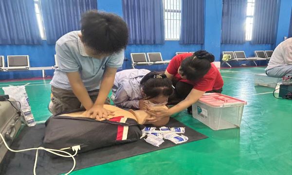 示范结束后,学生们轮流上阵实操。在急救员的耐心指导下,大家认真练习每一个步骤,调整按压的位置、力度和频率,反复琢磨人工呼吸的正确方法。智能人体模型能够实时反馈操作数据,帮助学生们及时纠正不当操作,确保每一位学生都能掌握基本的心肺复苏技能。