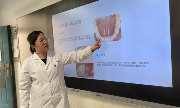 为提升小学生口腔健康意识,帮助孩子们掌握科学护牙知识,在第 37 个全国爱牙日来临之际,9 月 19 日,雕庄街道社区卫生服务中心口腔科的潘湘红医生,走进辖区小学,为三年级学生带来了一场生动有趣的 “乳牙恒牙协同保护” 主题护牙讲座,用专业知识为孩子们的口腔健康保驾护航。