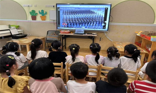 大班的姐姐还当起了“小小讲解员”,主动向弟弟妹妹介绍自己的作品:“这是我和妈妈一起做的神舟二十号,厉害吧!”“这是我做的五角星,就像天上的星星一样漂亮!”孩子们稚嫩的声音、认真的模样,感染着在场的每一个人。