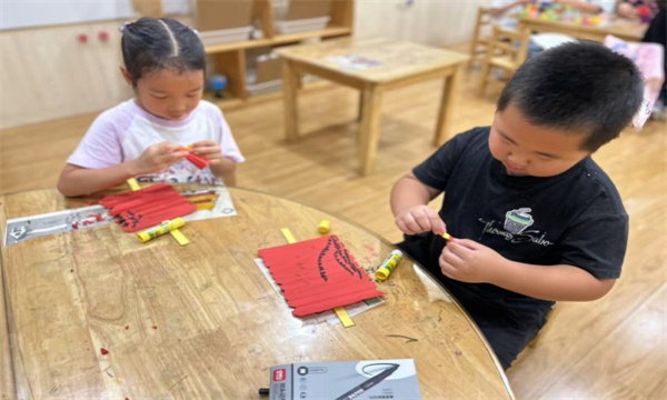 自开学以来,班级老师便围绕“国庆”主题开展了系列活动。通过观看阅兵视频、讲述祖国发展故事、认识国旗国徽等形式,孩子们对“国庆节”有了更深刻的理解,也萌发了用作品表达对祖国热爱的强烈愿望。在创作阶段,孩子们化身“小小艺术家”,充分发挥想象力与动手能力:有的用彩笔绘制“我心中的天安门”,红色的城墙、金色的屋顶在画纸上格外醒目;有的利用废旧材料制作“天安门灯笼”,在同伴协作中传递爱国情怀。