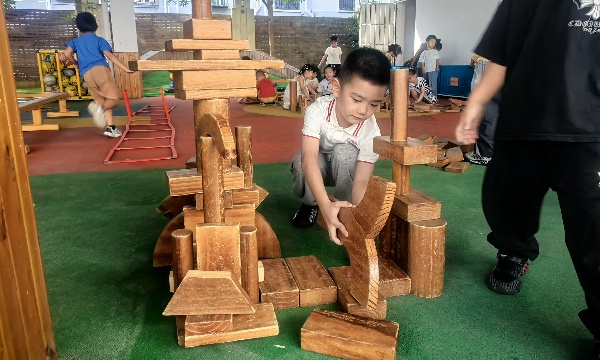 室内外积木的搭建深受孩子的喜爱,在游戏中能够尝试多种搭建技能并创作复杂的物体形象,也会结合自身经验进行创造和探索。自主游戏开展的过程中,我们这次将碳化积木的位置调整到了大操场,为幼儿提供了充分的建构空间,同时还准备了小推车、塑料筐、玩具素材等多种辅助材料,尽可能的满足孩子们的游戏需求。2025年9月23日常州市天宁区清凉新村幼儿园大五班的小朋友们在进行游戏时,通过自主选择材料、自由结伴、大胆创造和想象开展了搭建活动。