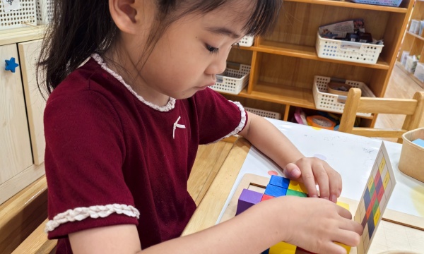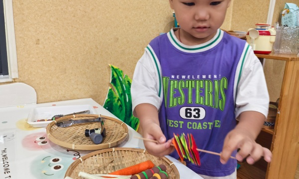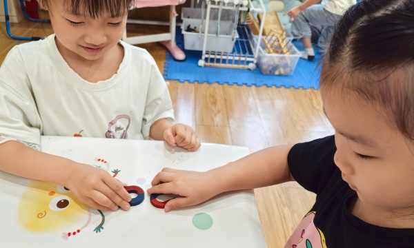 看!角色区里的“小厨师”有模有样的为顾客们准备着美食,甜甜的蛋糕、香香的包子、各种各样的蔬菜等,在“服务员”的帮助下端到了“顾客”的手里;科学区里浩浩和娜娜探索着磁铁的秘密,浩浩把两个磁铁靠在一起时,发现磁铁之间产生了移动,这时娜娜用她的磁铁去碰浩浩的磁铁,发现磁铁紧紧的靠在一起,这时候两个小朋友开始了磁铁的探索之旅;此刻的数学区里,悦悦正根据图形卡片提示,专心的把立体积木一个一个按照题卡摆放,摆放好后还不忘跟提示卡对照一下,检验一下自己的结果是否正确;孩子们自由、自主、创造性的进行着区域活动,玩得不亦乐乎。