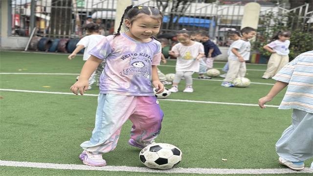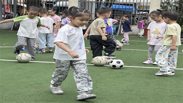 为了加强幼儿的身体素质锻炼,培养幼儿的团队协作能力,传承体育拼搏精神,2025年9月23日上午常州市天宁区翠竹幼儿园大一班的孩子们结合近期苏超的常州赛事开展了足球运球练习活动。