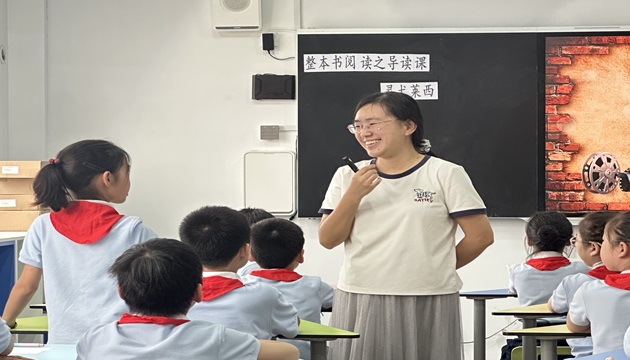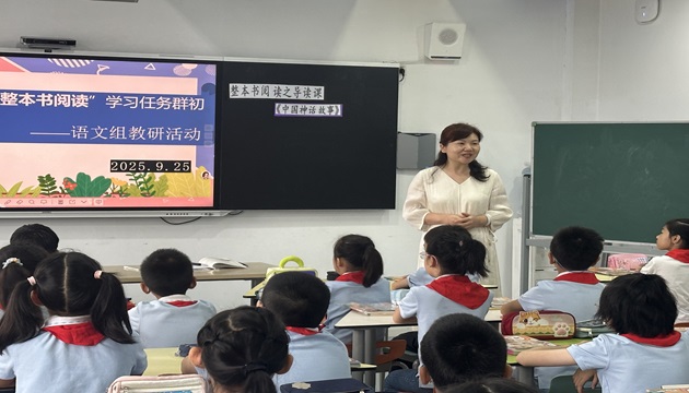 书香润桃李,阅读照人生。9月25日上午,解放路小学语文教研组在学校录播教室成功开展了以“双新背景下‘整本书阅读’学习任务群初探”为主题的教研活动。本次活动第一节课是由黄春燕老师执教的《中国神话故事》导读课,第二节由丁盼老师引领学生走进外国文学名著《灵犬莱西》的动人世界。全体语文教师全员参与,黄新恬副校长高位指导,为班级开展整本书阅读提供了宝贵的经验和方法。