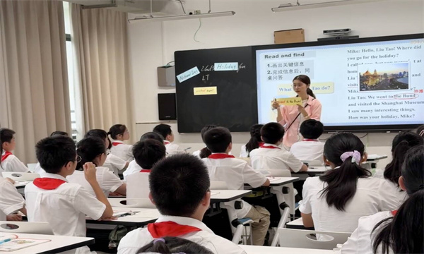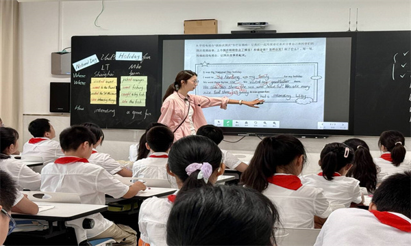 活动伊始,马元聪老师为老师们带来了一节精彩纷呈的新课展示。她巧妙地结合自身实际引出本单元的核心主题“Holiday fun”。再通过自己的假期、课文角色的假期,由浅入深地引出并教授本单元的核心词汇和句型。最后,马老师又鼓励学生们分享自己的假期,瞬间拉近了学生与课本的距离,激发了学生的表达欲望,充分体现了“以生为本”的教学理念,将语言学习转化为了一场有趣的意义探究。