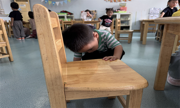 在这个过程中,宝贝们不仅锻炼了手部精细动作和肢体协调能力,更在亲身实践中懂得了“劳动光荣”的道理。他们擦完桌椅后,看着自己的劳动成果,脸上都露出了自豪的笑容。