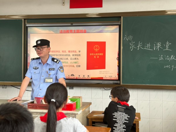 活动最后,蒋警官以“健康成长,从现在做起”勉励全体同学,希望法治的种子在大家心中生根发芽,伴随他们走向更广阔的未來。本次家长进课堂活动内容充实、形式生动,有效提升了学生的法治观念和安全自护能力,丰富了校园法治文化内涵,为构建平安、和谐校园提供了有力支持。