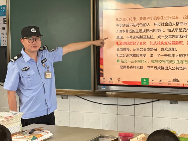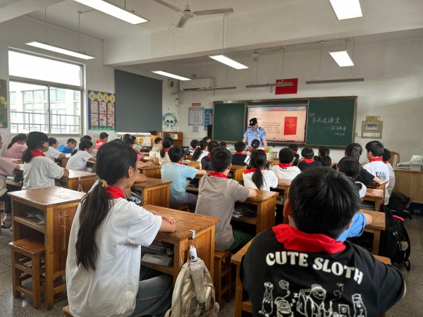 为深化校园法治教育,增强学生的法律意识和自我防护能力,2025年9月26日下午2:00,六(1)班迎来了一位特别的老师——焦溪派出所警员、本班学生蒋旭岩的爸,他给同学们带来了一节生动而深刻的法治教育课。