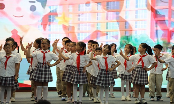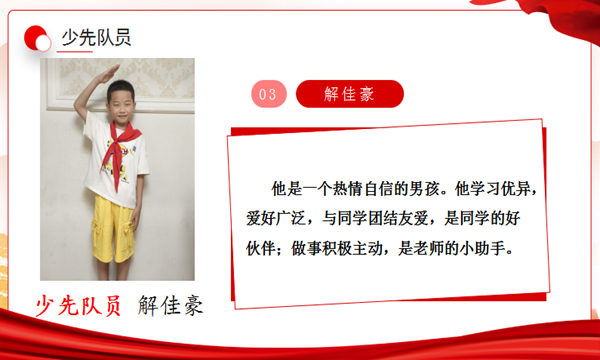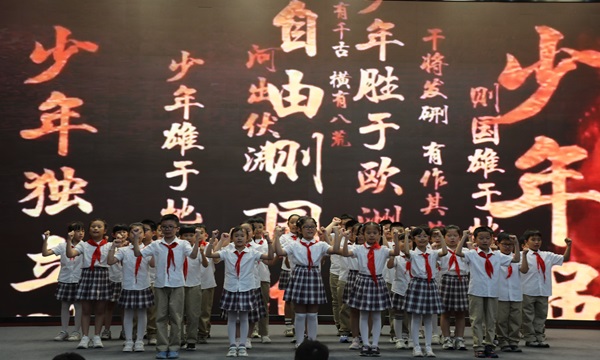 最后三(4)中队的全体队员们带来班级合唱《强国少年》。用整齐划一的动作、饱满昂扬的精神,展现新时代少年“强国有我”的坚定信念,舞台上跃动的身影与嘹亮的歌声,汇成一曲青春赞歌。