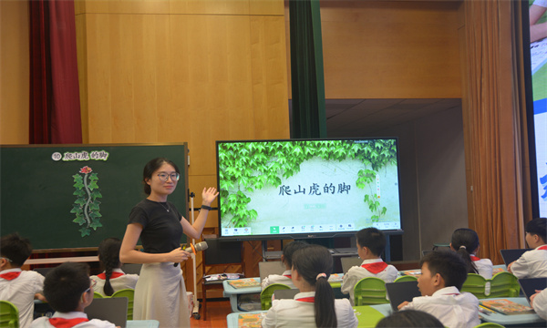 会议首个环节聚焦课堂教学创新实践,由教师陈燕芳执教语文示范课《爬山虎的脚》。课堂中,陈老师充分依托信息技术手段,通过动态课件展示爬山虎藤蔓生长过程、借助互动平台实现师生实时批注交流、利用多媒体资源拓展植物观察视角,将抽象的文本描述转化为直观可感的视觉体验。