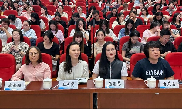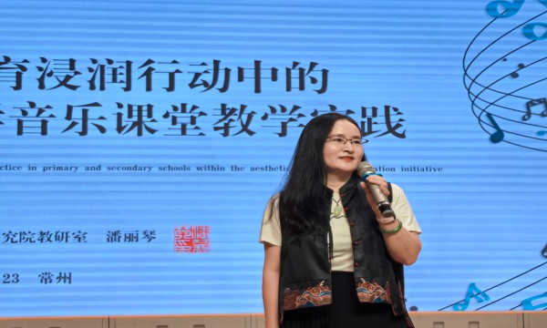 江苏省音乐教研员潘丽琴老师为与会教师带来专题讲座《美育浸润行动中的中小学音乐课堂教学实践》。她从2025年高考命题趋势切入,指出美育已从“学科点缀”升级为“全民浸润”。她以语文试题中剪纸寓意解析、高山流水知音故事为例,强调美育与多学科深度融合的必然性。面对AI时代,她抛出关键命题:“音乐教育的不变是育人本质,应变是教学形态”。跨学科教学如同“苹果榨汁”,需将知识转化为可感知的体验,实现从“双基”到“素养”的跃迁,让美育成为学生面对未来的底色。