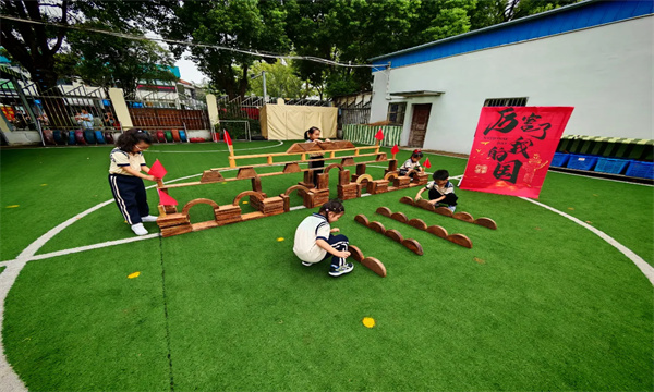 孩子们发挥想象力,动手搭建心中的祖国。长城、天安门、宇航基地……一座座建筑在他们手中诞生,不仅了解了祖国的大好河山,更在心中种下了建设祖国的梦想。