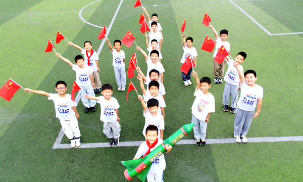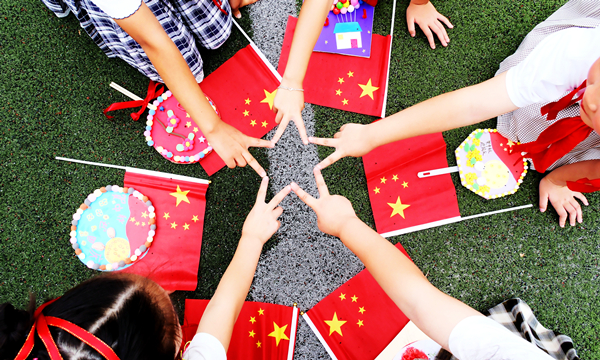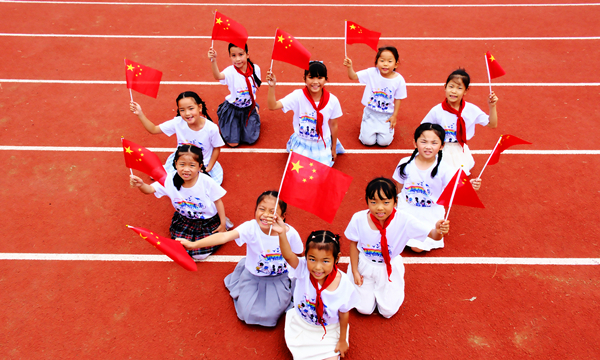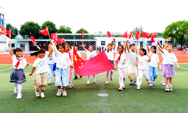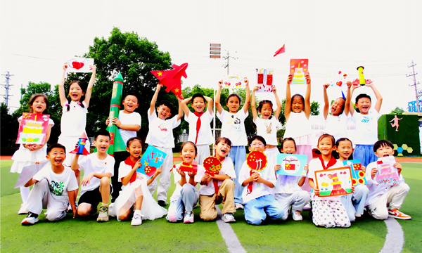 当一件件充满童趣的手工作品完成时,孩子们举着作品围坐操场,灿烂的笑脸在五彩手工和红色国旗的映衬下格外鲜活。“祝祖国妈妈生日快乐!”清脆的祝福声整齐响亮地响彻校园,稚嫩的脸庞上,既有对即将戴上红领巾的期待,更有对祖国繁荣昌盛的美好祝愿。