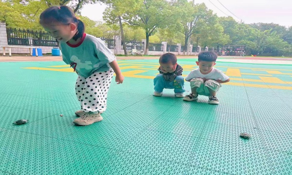 追随幼儿的兴趣,孩子们和乌龟的故事就这样开始了,宝贝们想带它们出去晒晒太阳,爬一爬,做做运动,于是就有了“带乌龟散步”、“带乌龟兜风”,还有备受瞩目的乌龟爬爬赛。比赛开始啦,小乌龟们完全迷失了方向,向各个地方爬去,这可急坏了萌娃们。于是孩子们用大积木搭建了赛道,比赛开始了,小乌龟们都沿着自己的赛道前进,“小土豆”赢啦!