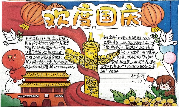 这个假期,一份融合了国庆、中秋与抗战胜利80周年元素的美术实践作业,让孩子们收获满满。低年级在手工中感知秋日与节日之美,中年级用画笔描绘团圆与家国情怀,高年级则通过主题创作表达对历史的铭记与对未来的担当。此次分层设计的实践作业,成功将美育与德育相结合,在学生心中播下了爱国与文化的种子。