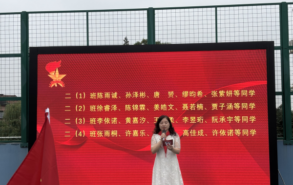 最后,王校长以“红梅花儿开,朵朵放光彩”寄语新队员:“愿红领巾永远鲜艳,愿你们在队旗下成长,早日成为担当民族复兴大任的时代新人!”