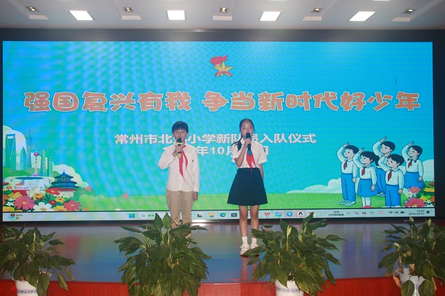 星星火炬照童心,红色薪火代代传。2025年10月13日,在第76个中国少年先锋队建队纪念日当天,常州市北郊小学四楼阶梯教室庄严肃穆,“强国复兴有我,争当新时代好少年”二年级新队员入队仪式在此隆重举行,全体师生共同见证78名二年级同学加入中国少年先锋队的光荣时刻。