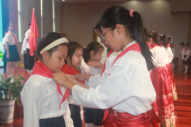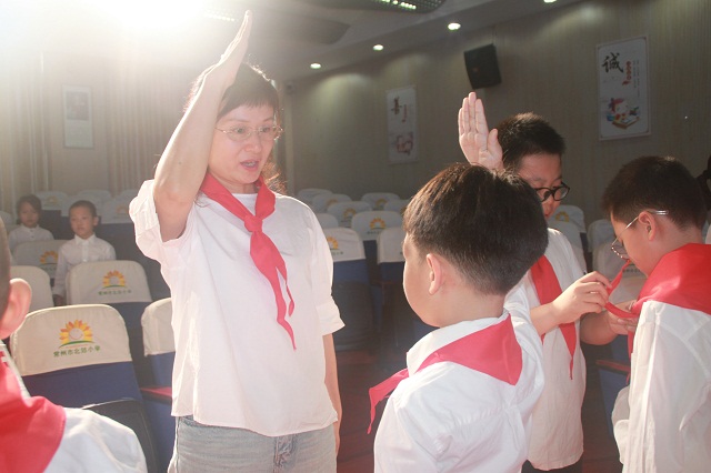 此次建队日入队仪式不仅是一场光荣的加入仪式,更是一堂深刻的思政课。胸前的红领巾为新队员们点亮了成长的方向,响亮的誓言在他们心中种下了红色的种子。相信在星星火炬的指引下,我校新队员们必将传承红色基因,以实际行动践行“时刻准备着”的承诺,成长为担当民族复兴大任的时代新人。(图/文:陈夏婷)