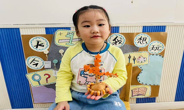 看呀,一个个可爱的小脑袋凑在一起,小手忙个不停。有的小朋友仔细挑选着橙色的“树叶”,有的认真给“树干”缠绕绳子,还有的在装饰“树坑”呢。
