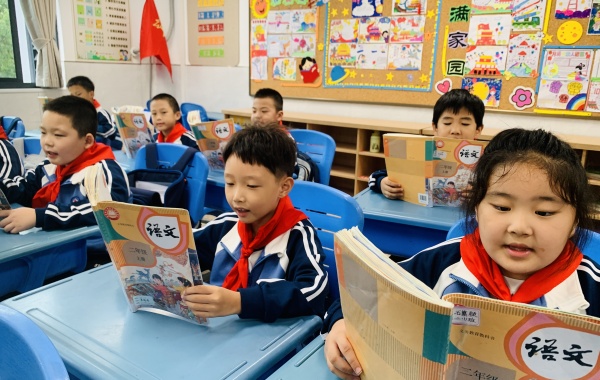一年级的孩子们用清脆的童声朗诵《金木水火土》,端正的坐姿和专注的神情尽显童真。二年级同学朗读《植物妈妈有办法》,充满童趣,活泼的演绎展现了自然的奇妙。三年级同学以舒缓的语调演绎《听听,秋的声音》,将诗意秋天娓娓道来。四年级的《观潮》气势磅礴,铿锵诵读再现大潮的壮观景象。五年级同学朗读《白鹭》,如清泉流淌,优美声线勾勒如诗画卷。六年级朗读《狼牙山五壮士》慷慨激昂,悲壮之情震撼人心,将比赛推向高潮。