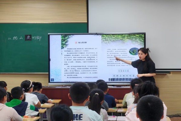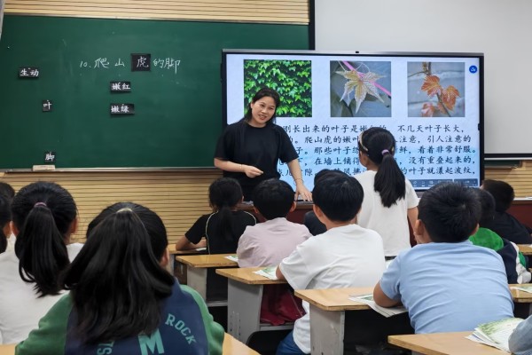 张京老师为大家带来了四年级语文阅读课《爬山虎的脚》。整堂课板块推进有序,重点突出。导入环节勾连前知,用学过的古诗引出观察的方法。梳理文脉部分呈现出 “剥茧抽丝” 的教学智慧:通过表格梳理叶子的生长过程从 “嫩红→嫩绿→绿得新鲜” 的色彩蜕变,到 “一顺儿朝下、均匀铺展” 的形态描摹,学生在圈点批注中不仅触摸到爬山虎叶子 “铺得那么均匀,没有重叠也不留空隙” 的旺盛长势,更透过 “漾起波纹” 的动态描写,窥见叶圣陶先生用词的精准。张老师还借助信息技术将学生的学习情况进行实时反馈,并将学生的回答与文本进行比较,巧妙地突破教学重点。