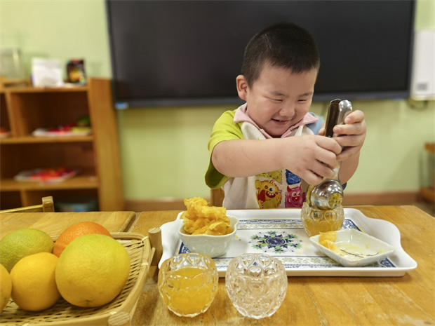 “老师,我榨出橘子水啦!”2025年10月14日,常州市天宁区幼儿园小班教室里果香满溢,一场热闹的“自制橘子汁”活动正在进行,孩子们化身“小小榨汁师”,在动手实践中收获乐趣。