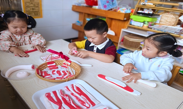 “从认识焦溪二花脸猪,到动手制作黏土作品,再到开展买卖游戏,孩子们始终保持着浓厚的兴趣。”西瓜班教师表示,这样的主题活动将地方文化、动手实践与游戏结合,让孩子们在玩中学、学中乐,既加深了对本土特色资源的了解,又培养了多方面的能力。