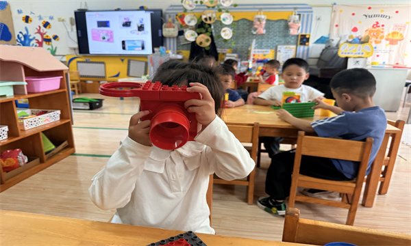 “老师,我的相机能拍幼儿园的小花!”“你看,我这个相机有长长的镜头呢!”10月20日,常州市广化幼儿园小班的乐高课堂上热闹非凡,孩子们正围绕“创意相机”主题,用五颜六色的乐高积木开启一场趣味搭建之旅。