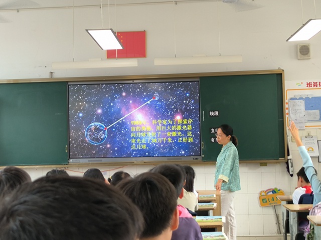 在教学过程中,王老师充分落实“学生为主体”的教学理念,组织学生开展动手操作、互动交流与游戏化探究。尤其是在“用信封遮线段猜图形”的环节中,学生积极参与、大胆表达,不仅加深了对“无限延伸”“角的构成”等概念的理解,更在猜想与验证中发展了空间观念和推理能力。整堂课节奏流畅、氛围活跃,学生参与度高,充分体现了“做中学、思中悟”的教学思路。