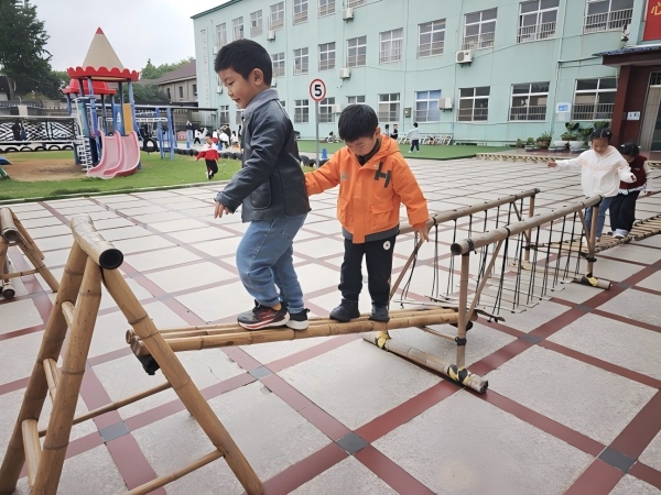 阳光正好,微风不燥。10月27日焦溪幼儿园的操场上传来一阵阵欢声笑语,大(1)班的孩子们化身为一个个勇敢的“小探险家”,在户外攀爬架和竹梯上,展开了一场充满挑战与乐趣的户外冒险。