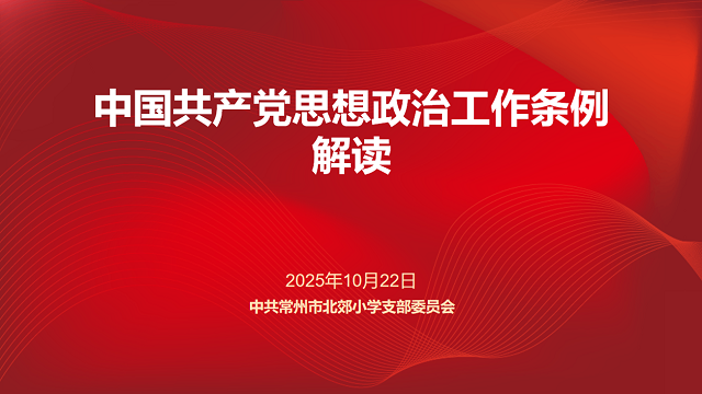为深入贯彻党的教育方针,加强党员教师的思想政治建设,2025年10月22日中午,常州市北郊小学党支部在三楼会议室召开了主题党日活动。此次会议有两项议程:第一项是集体观看《八秩荣光——新四军中的文艺战士》;第二项是解读《中国共产党思想政治工作条例》。
