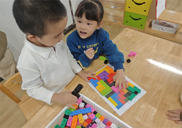 整个班级的孩子们在不同区域里各得其所,或独自专注探索,或与同伴默契协作,每个人都沉浸在自己的活动中,处处洋溢着孩子们的欢声笑语。