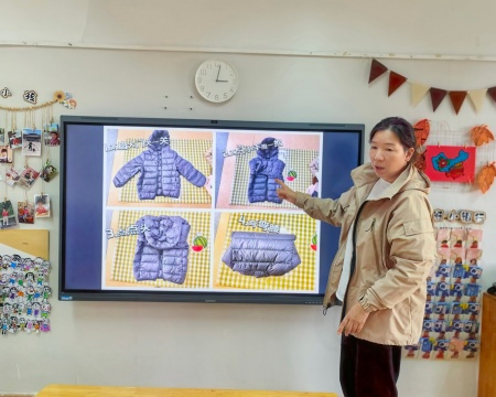 活动伊始,老师们通过生动的故事和有趣的儿歌,向孩子们讲解了叠衣服的步骤和要领。朗朗上口的“叠衣歌”将复杂的步骤简化:“两扇大门关一关,两只小手抱一抱,点点头,弯弯腰,我的衣服叠好啦!”孩子们一边念着口诀,一边兴致勃勃地动手尝试。从杂乱无章的“小面团”到方方正正的“豆腐块”,每一件成功叠好的衣服都引来了孩子们惊喜的欢呼。