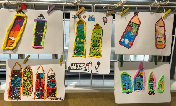 有了各式各样的笔,孩子们开始探索笔的创意玩法。在“笔尖上的色彩”活动中,孩子们用自己制作的创意笔和收集的各类画笔,在画纸上自由创作。有的孩子用彩色铅笔打造出可爱的小动物,有的孩子用黏土勾勒出了形态各异的铅笔屋……教师则鼓励孩子们大胆表达自己的想法,讲述画作背后的故事,让每一幅作品都充满童趣与想象。