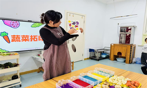 秋天是丰收的季节,秋天的蔬菜种类繁多。为了提高幼儿的艺术审美能力,常州市天宁区翠竹幼儿园中一班的孩子在老师的带领下进行了蔬菜拓印画活动。