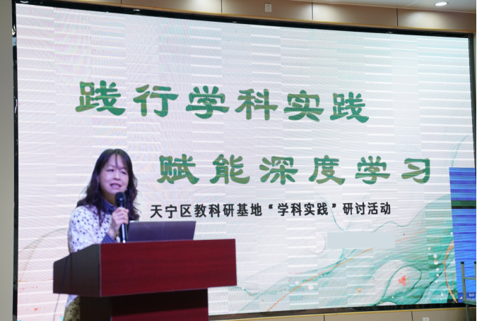 最后,教师发展中心于纯老师以“锚定素养生长:学科实践的理论与实践”为主题进行了总结。于老师阐述了学科实践的核心内涵,强调其并非简单的动手活动,而是基于学科本质、指向素养培育的深度学习过程。她结合新课标要求,指出学科实践需立足真实情境,设计具有挑战性的任务,在解决问题中建构知识、发展能力。她结合两位老师的课堂教学,指出学科实践应将生活嵌入课堂,引导学生像学科专家一样思考与行动,改变育人的方式。