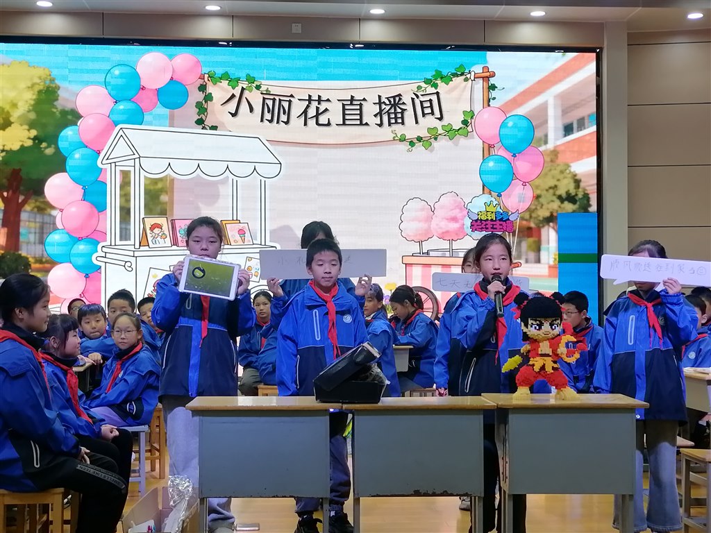 丽华新村第二小学的王莺燕老师带来的《小丽花直播间》一课以创新形式将语文教学融入直播带货。王老师以“为‘宝贝’寻新主”的情境导入,引导学生归纳优秀主播需“讲得清、说得美、动得情”。学生分组合作,从设计文案、打磨稿件到分工扮演主播、助播,融入说明方法与情感元素。模拟直播环节,各小组登台展示,学生在实践中深化对语言艺术的理解,在趣味中提升语言运用与协作能力。