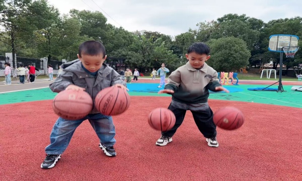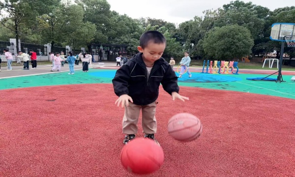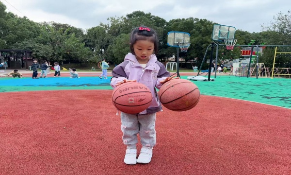 练习中,孩子们展现出极强的专注力与毅力。有的孩子刚开始双手节奏混乱,篮球像“调皮的小炮弹”四处滚动,却没有丝毫气馁,捡回球后继续跟着老师的口令反复尝试;有的孩子掌握技巧后,兴奋地向同伴展示,小脸上满是自豪。经过持续练习,越来越多的孩子能双手同时将双球拍起,虽然次数不多,但每一次成功的弹跳都引来同伴们的欢呼。“我能拍10个啦!”中班的小朋友举着双手兴奋地喊道,眼里闪烁着成就感的光芒。
