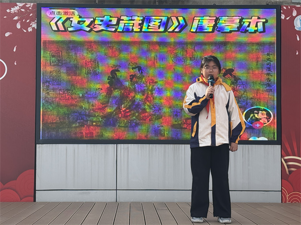在“文物小课堂”环节,五2班三位同学分别以“文物”的身份,用第一人称深情自述,带领大家走进三件珍贵文物的世界。同学们声情并茂的讲述,赋予了文物鲜活的生命,让大家仿佛穿越时空,与这些国之瑰宝进行了一场跨越山河的对话。